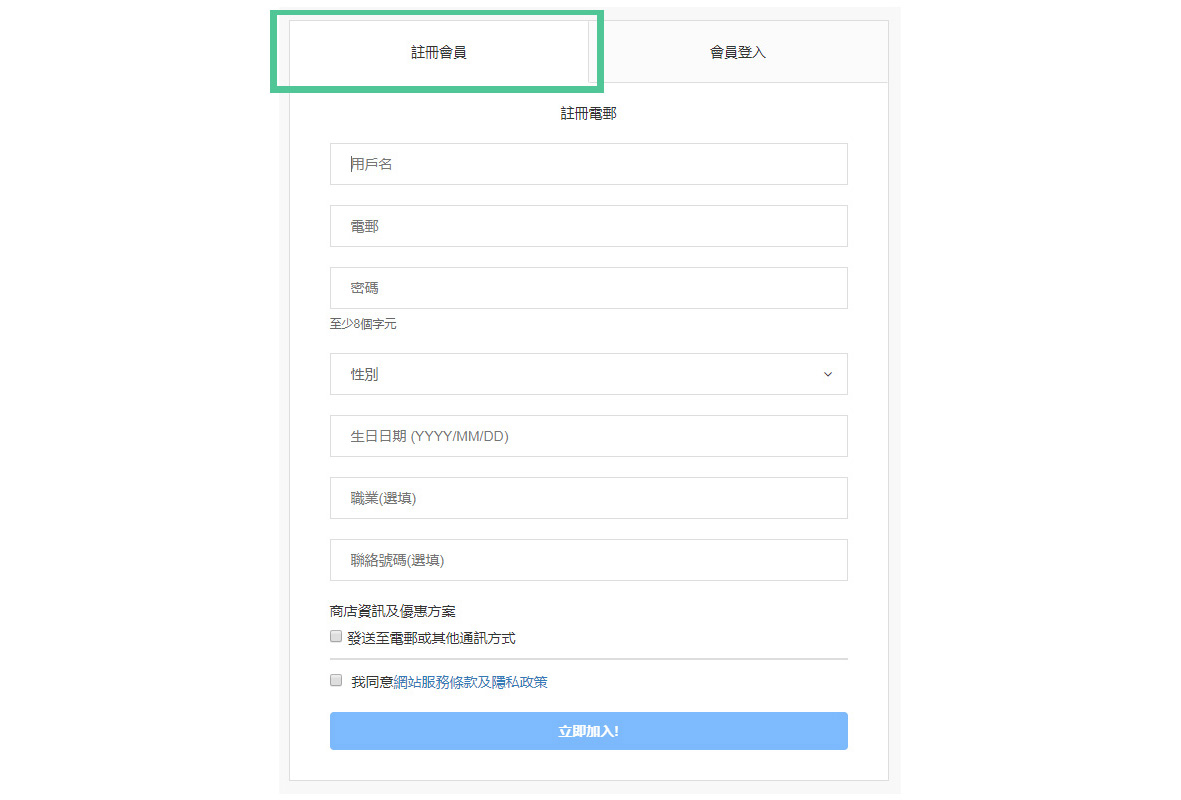 1. 註冊成為會員
