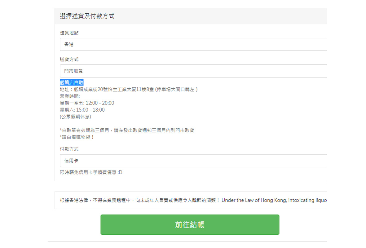 4. 填上送貨方式及結帳,完成!